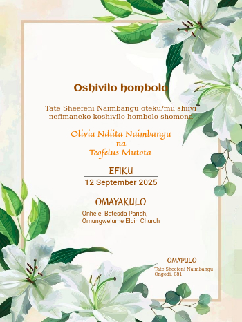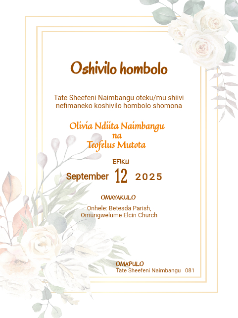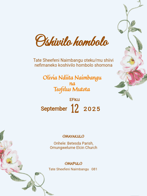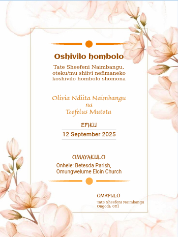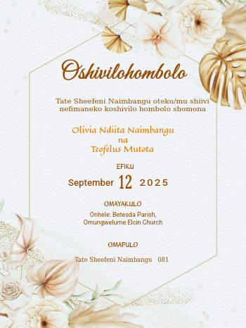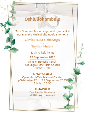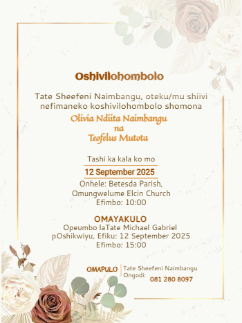 Wedding invitations by parents (Oshiwambo)